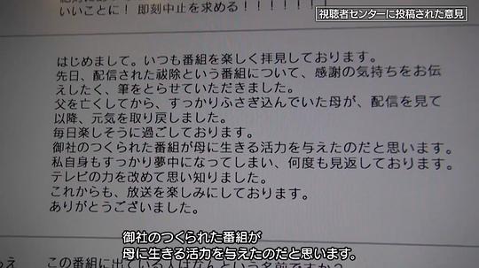 「祓除」(ふつじょ) 意指清除污秽或灾厄,是一种仪式用来净化过去被认为带有污秽或灾厄的影像或物品。 2023年11月30日,电视东京举办了一场名为“祓除”的事后节目,目的是解释随后发生的事件。